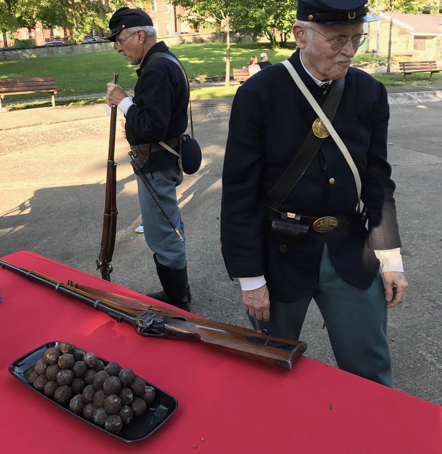 Civil War re-enactors, donut hole "cannon balls" and cartridge rolling activity