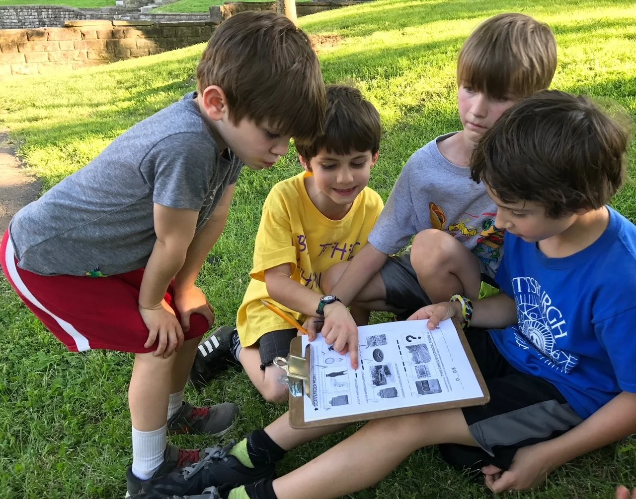 Heather with Arsenal Elementary students explaining park-wide scavenger hunt